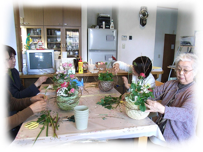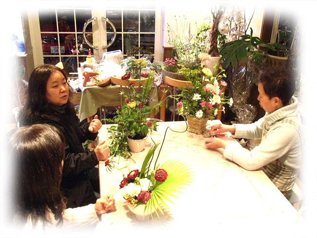 季節のイベントに合わせてのアレンジや、寄せ植えやプリザーブド、観葉植物などを扱った授業も